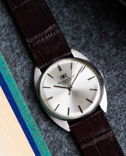 On apprécie cette IWC pour son boîtier de forme « C-Case », son beau cadran argenté