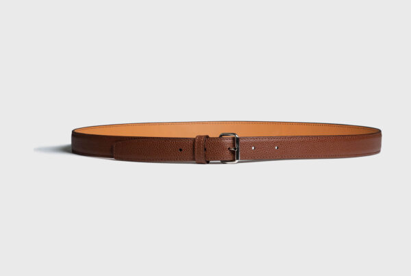 Rich and subtle, these grained cowhide leather belts blend easily with their environment … and your outfit.