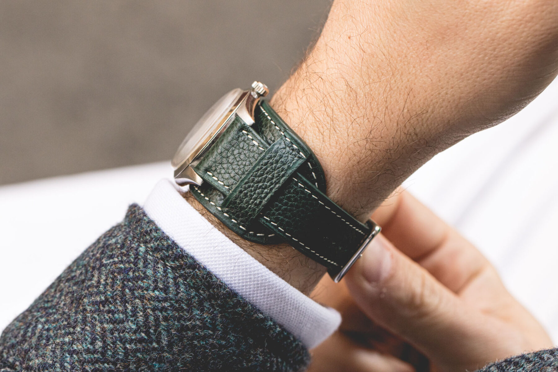 Redesigned in 2018 by JOSEPH BONNIE for a more elegant look when worn, it’s back in several combinations, like Forest Green grained cowhide leather as seen here.