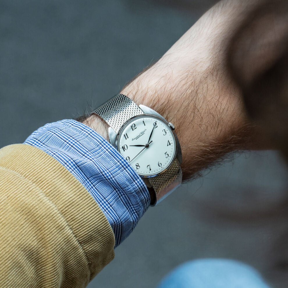 A beautiful mesh band, adjustable in a multitude of positions, and signed by IWC, completes