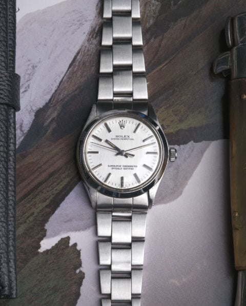 Here we have a watch revealing a very beautiful sunray silver dial and a central cross-hair motif, accompanied by applied silver engraved indexes. Its manual-winding 281 caliber is simple but very well finished.