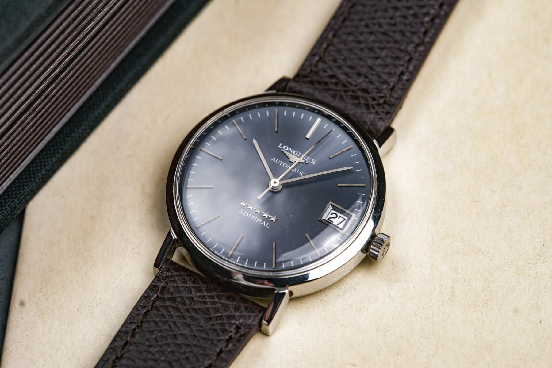 A round watch revealing a superb blue sunray dial where we find fine applied silver indexes, a date at three o’clock as well as the five stars at six o’clock, synonymous to the time of superior quality calibers.