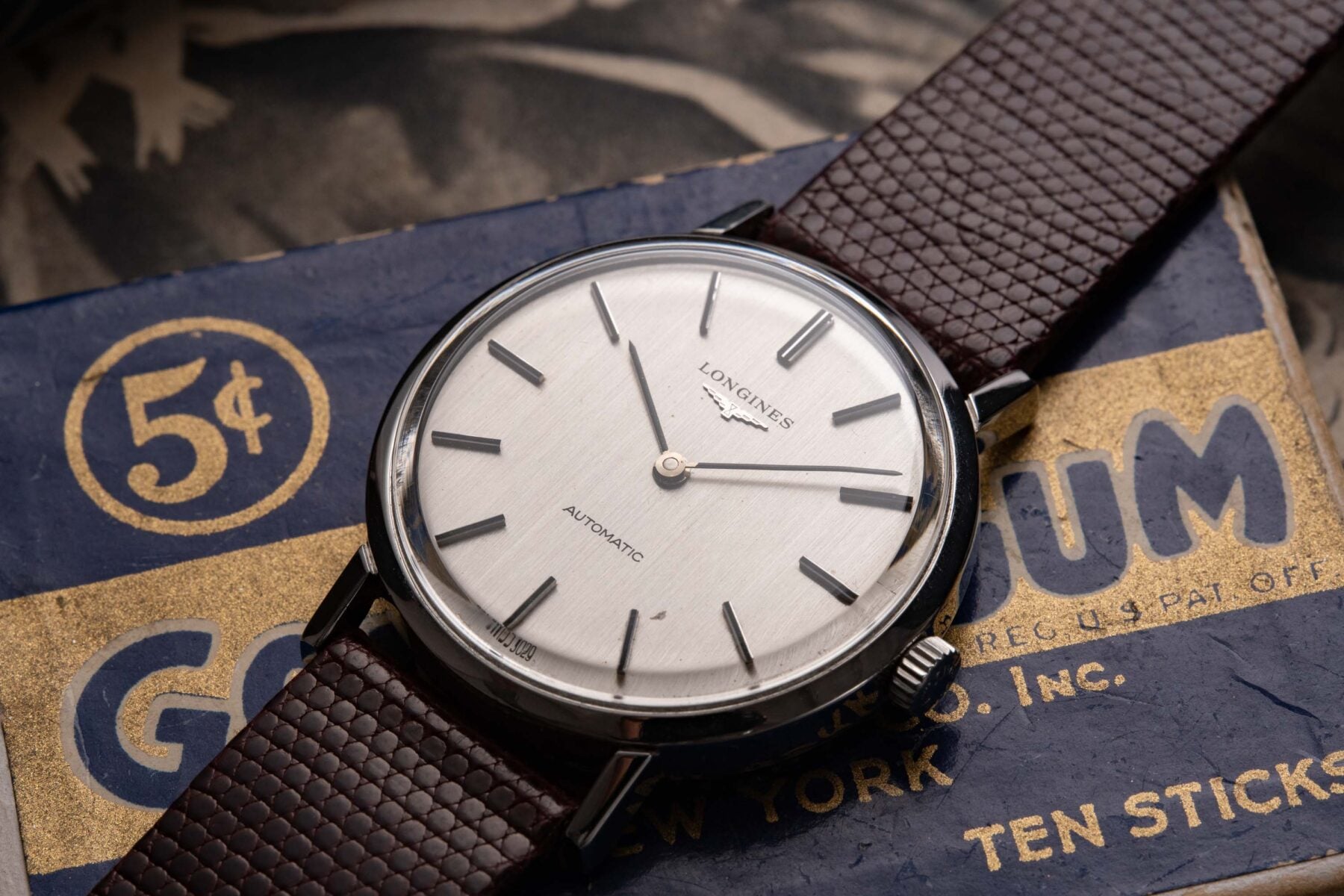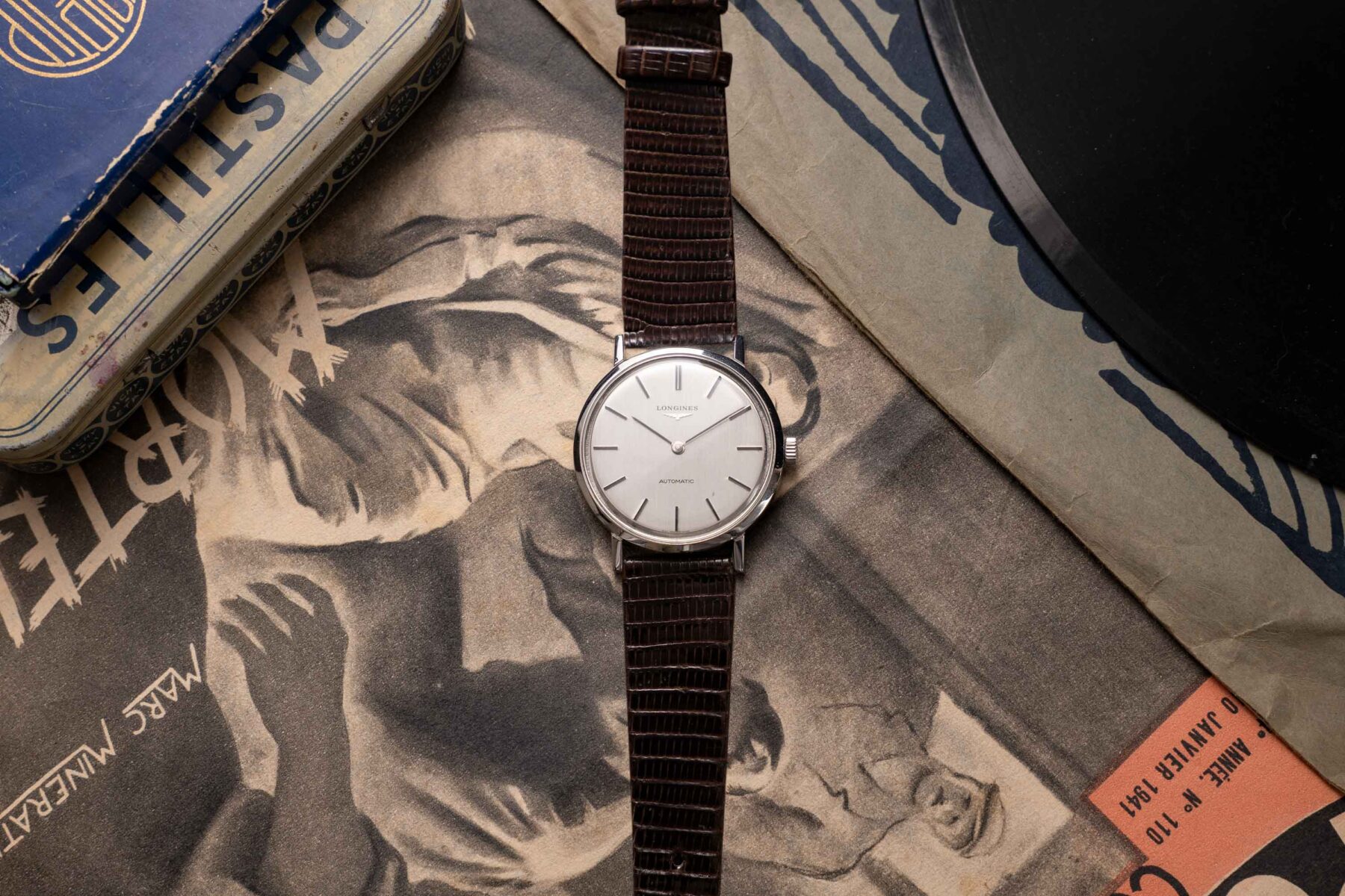 We are pleased to present this Longines Automatic from the 1970s. Its steel case highlights its silver dial, which offers a beautiful aperture. This watch has very beautiful and fine indexes as well as fine hands. At 12 o’clock is the Longines logo applied, while at 6 o’clock is the word Automatic.