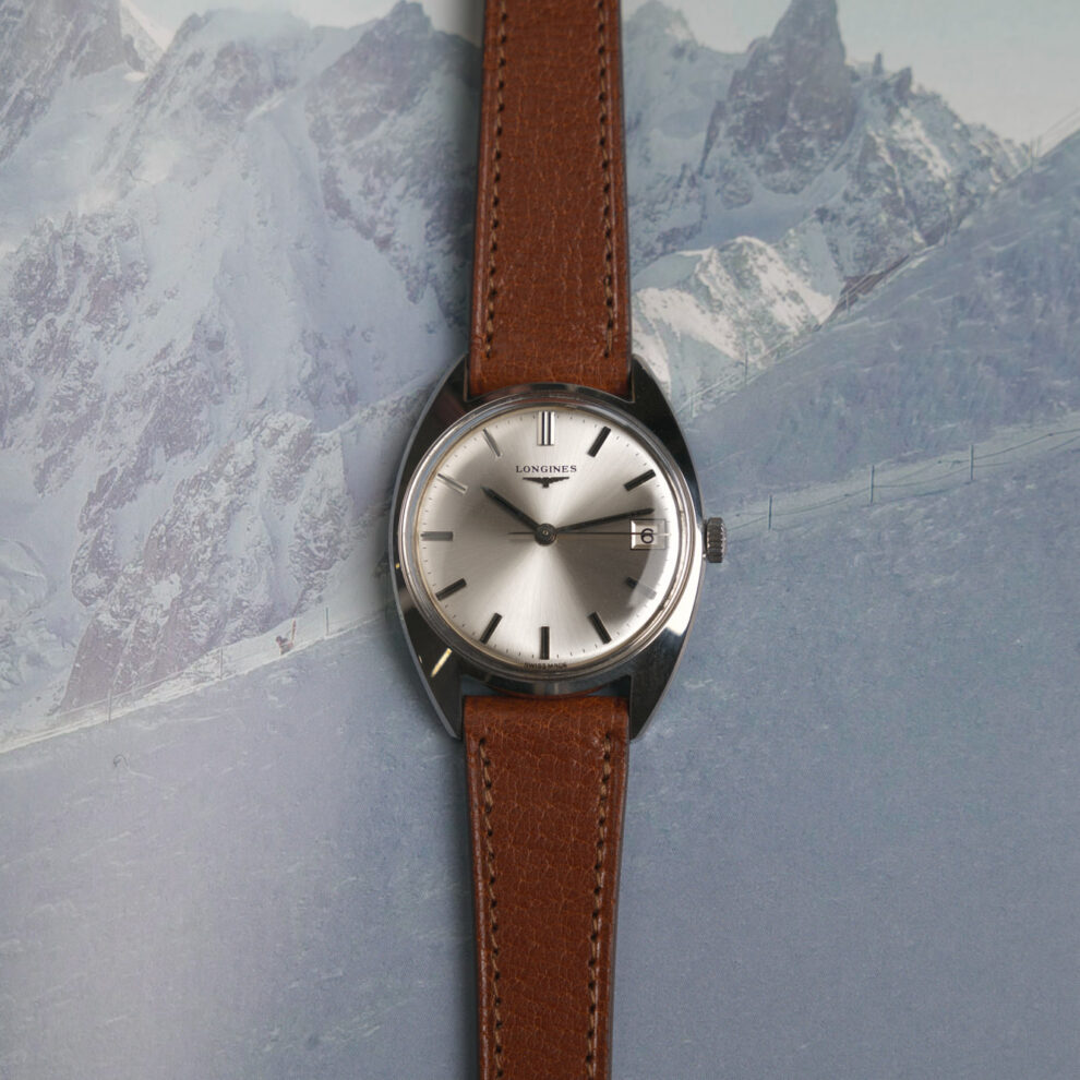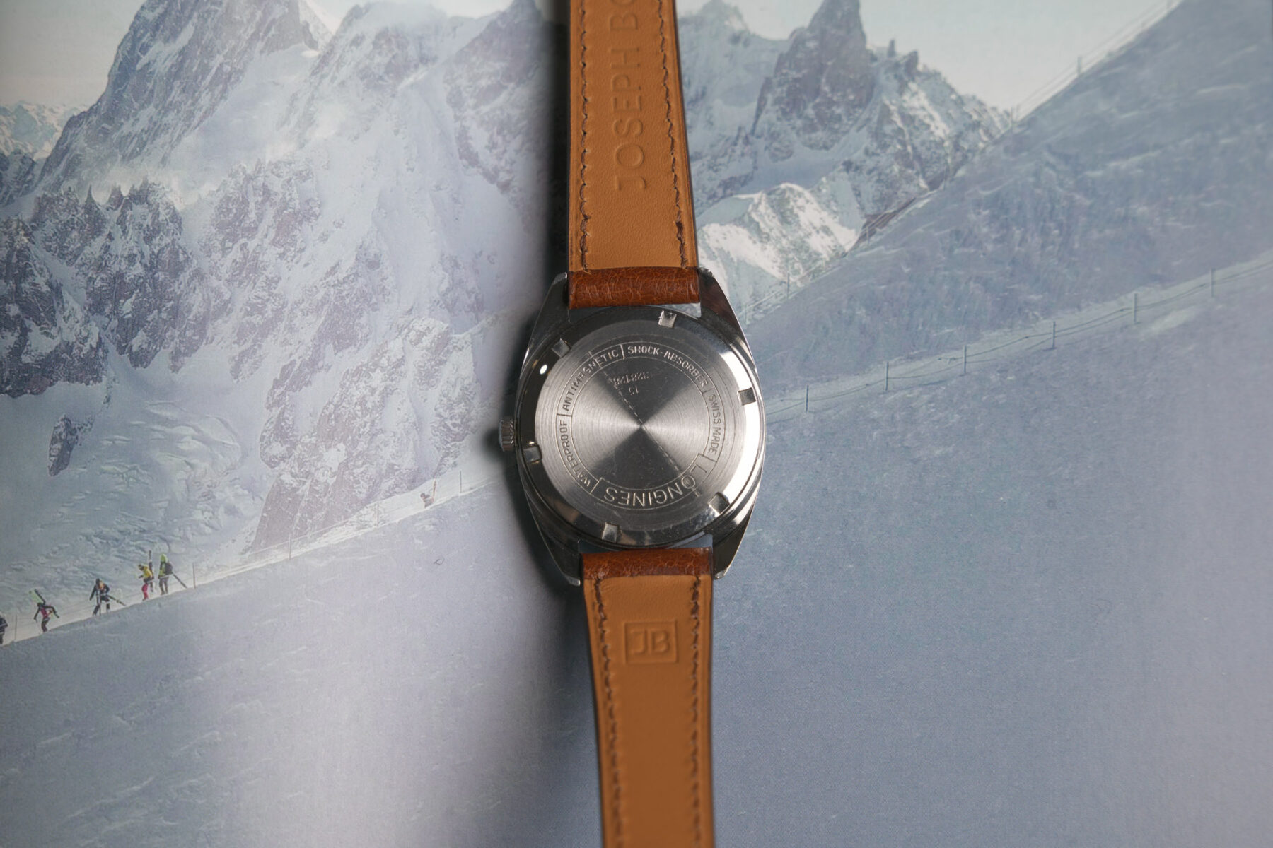 A piece that we appreciate for its beautiful 20 micron gold-plated bezel, which matches perfectly with the gold dial, lighter in the center and darker towards the outside, “smoked” as we would say today, where fine applied indexes with their white line sit wonderfully well, to go hand in hand with the white hands.