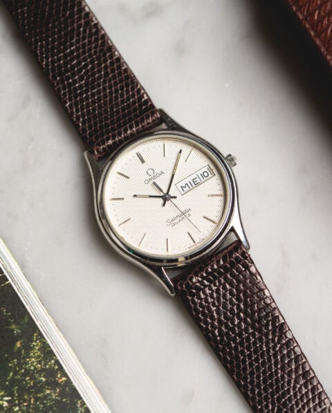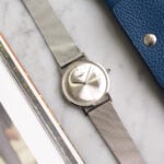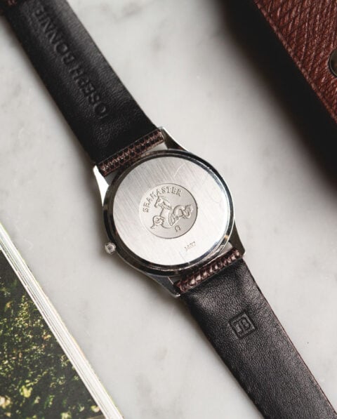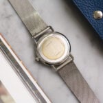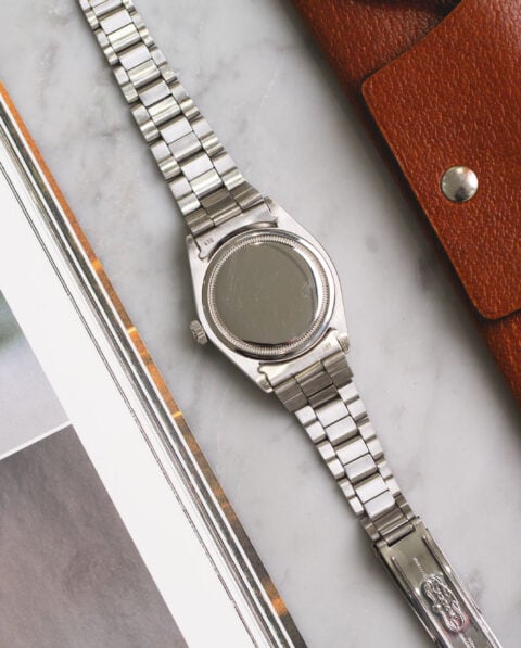 An incredibly thin piece of approximately 7.5 mm presenting a beautiful silvered sunray dial with fine black painted indexes with serif, only hovered over by two black wire hands.