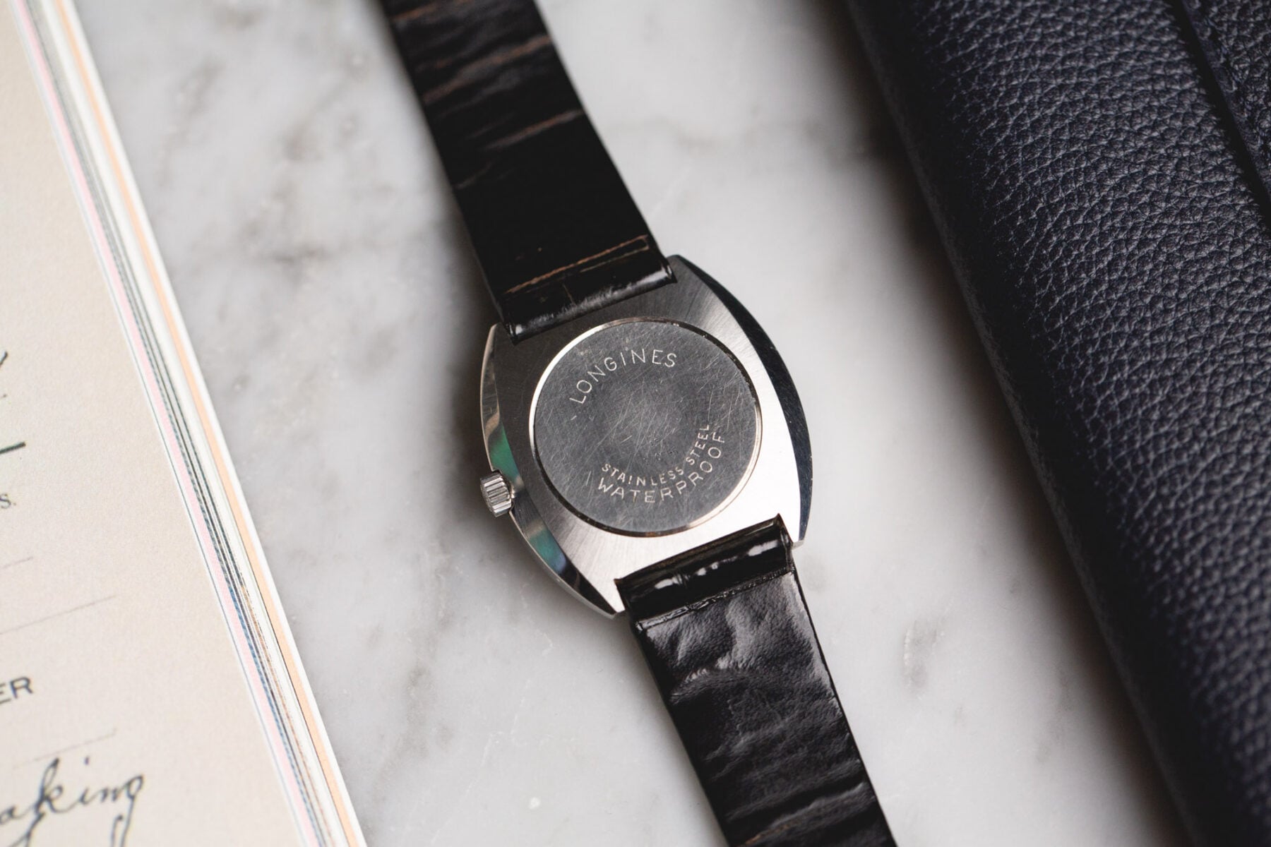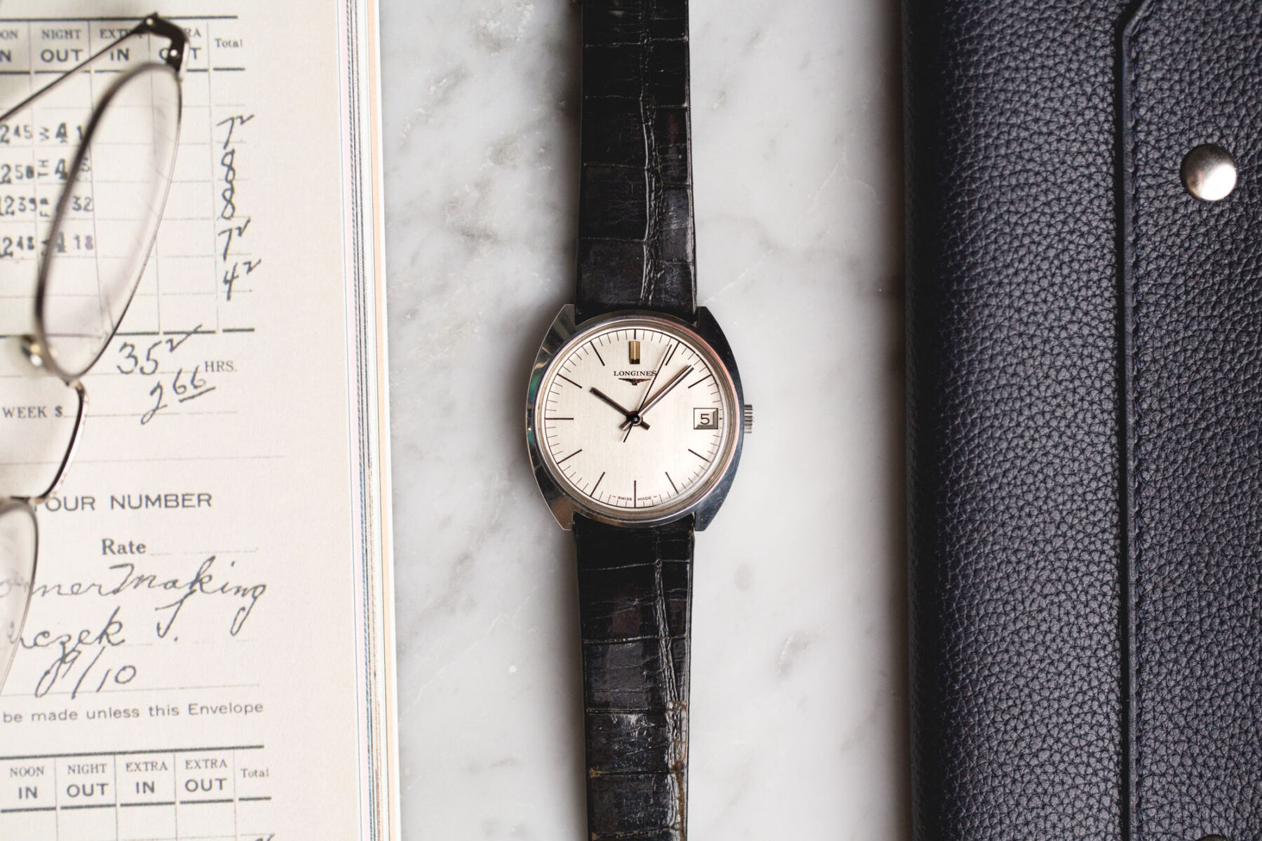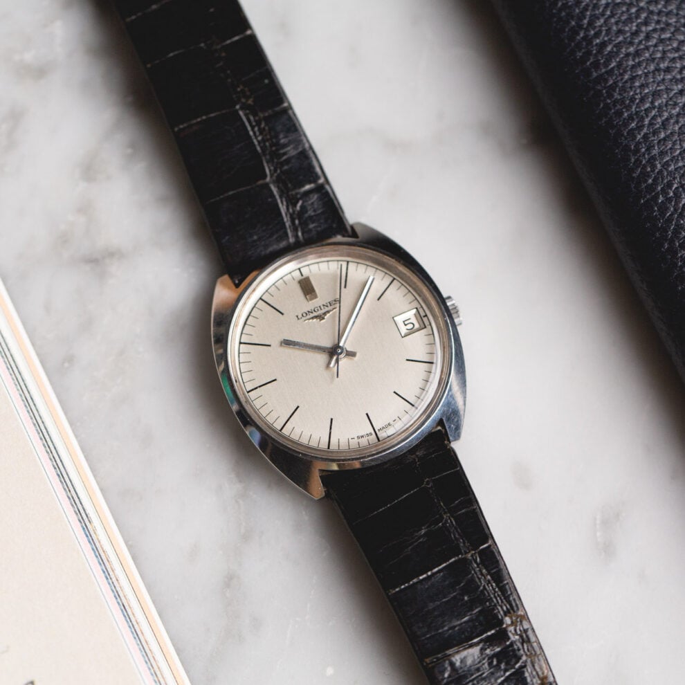 This Longines watch has a very simple brushed silver dial, with only one faceted hour marker at noon and beautiful black painted hour markers, which perfectly finds its place within this case of excellent condition, and on which you can still see the sunray finish on the back.