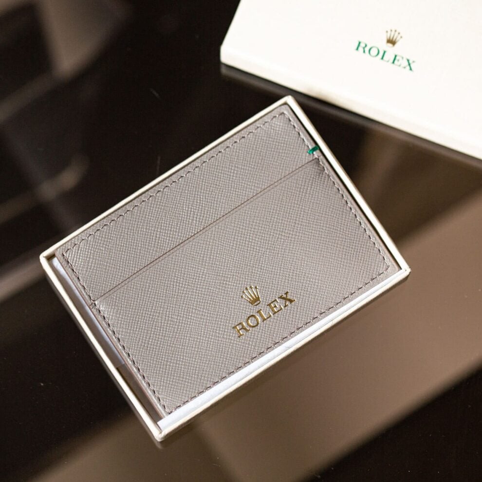 For all big fans of the crown brand, we have found a small accessory that can accompany you on a daily basis, or simply to store some important warranty cards. A small taupe-colored case that comes in its original box, probably offered in the past to a customer or someone close to the brand.