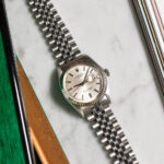 It was in 1945 that the Rolex Oyster Perpetual Datejust was unveiled for the brand’s 40th anniversary. This watch has a recognizable design, particularly over time thanks to its Jubilee bracelet and its fluted bezel, then to its cyclops magnifying glass located at 3 o’clock a little later.