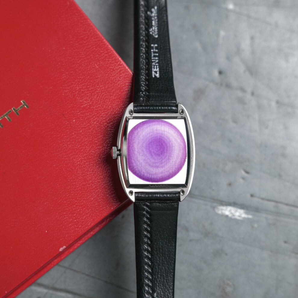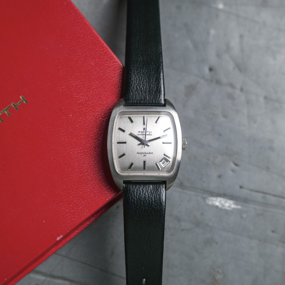 This is a watch you don’t see every day. This Zenith shaped watch, commonly known as the Respirator, is a classic of the brand from the mid-1960s. Ours is called Respirator X, in NOS condition, and is not like all the other Respirators …