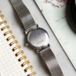 La Waltham que nous vous présentons possède un boitier en laiton chromé de 34 mm, un fond en acier signé Waltham, un beau cadran argenté soleillé aux chiffres romains peints avec des aiguilles « fils » noires. Petit supplément : la montre vient avec son bracelet en maille d’origine signé Waltham.